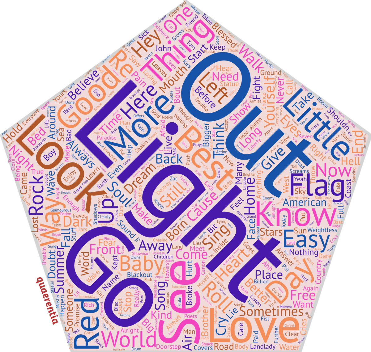 But isn’t it interesting that the dominating word is LIGHT? For an album that was delayed by the shock of the Trump election – and several songs appeal to the USA’s better side – there is unsurprisingly much darkness here. There’s lament, fear, failure, and the consciousness of mortality in spades. But this wordle indicates the determination to seek after its remedy, and perhaps also the hope for finding its remedy.
