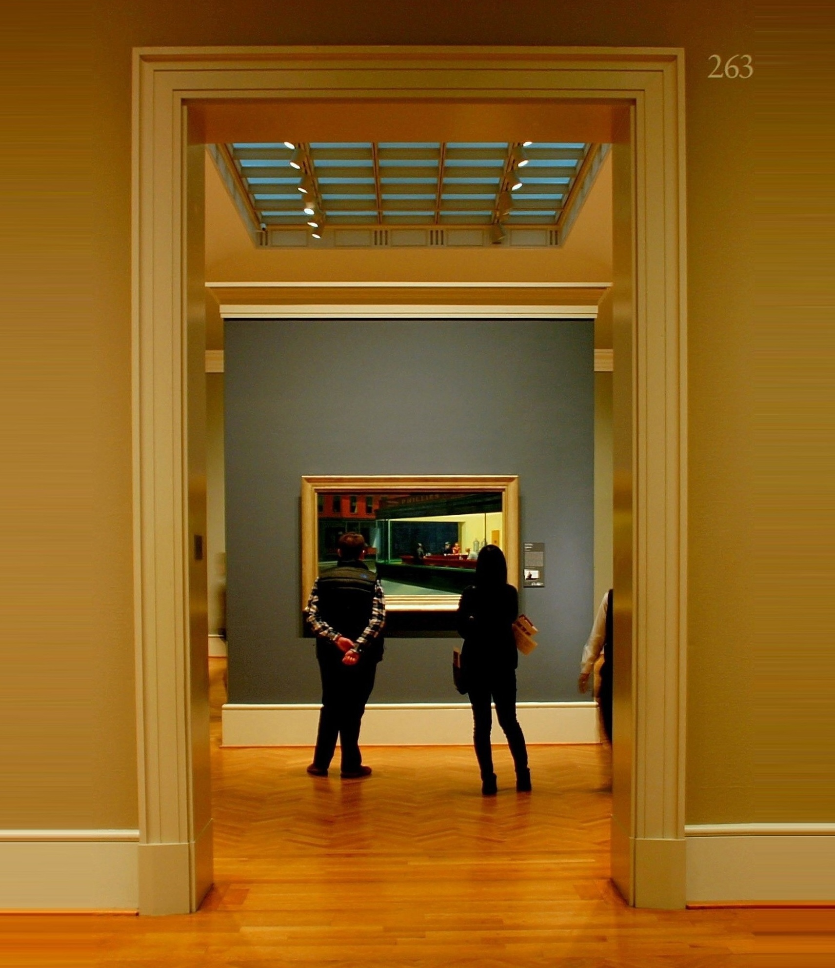 In response to a query on loneliness and emptiness in the painting, Hopper outlined that he “didn’t see it as particularly lonely”. He said, “Unconsciously, probably, I was painting the loneliness of a large city.” (Kuh, Katherine (1962). The Artist’s Voice: Talks With Seventeen Artists, Harper & Row. p. 134.)