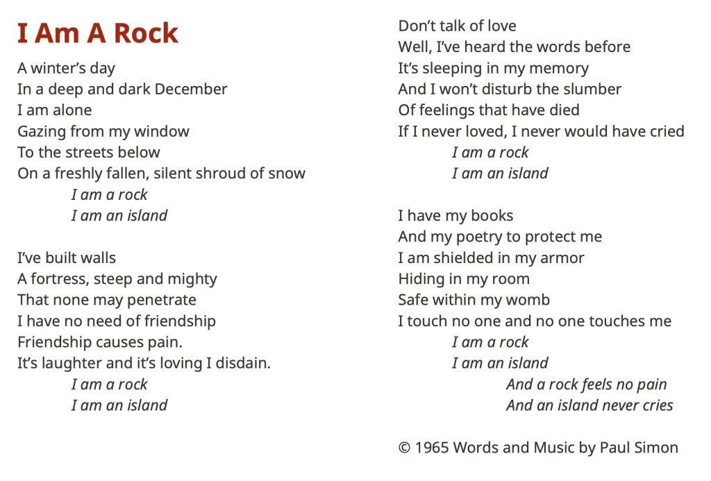 2. I am a Rock, by Simon & Garfunkel (1965)